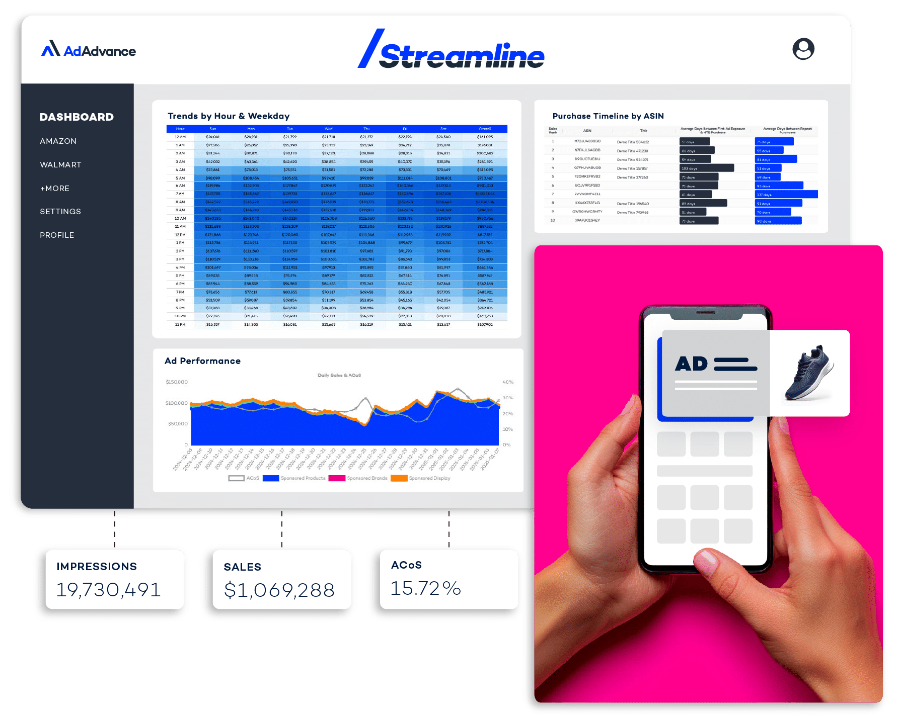 Expert-driven retail media advertising, powered by proprietary software and hands-on management—all in one streamlined platform.