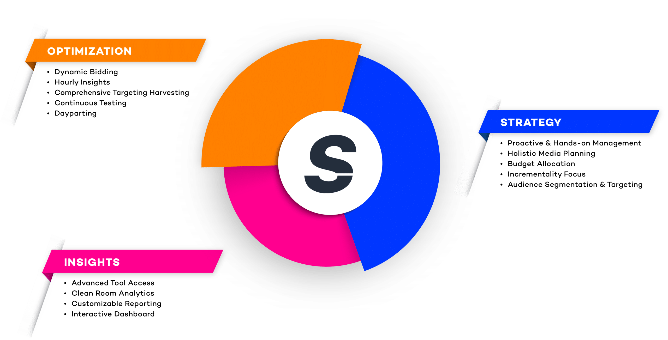 We harness the capabilities of the industry’s leading powerhouse demand-side platforms so you can reach your audience wherever they scroll & stream. As full-funnel retail media experts we harness first-party & intent data to implement advertising tactics across the customer journey. Simply put – that means precise audience knowledge, segmentation, and management.